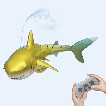 צעצוע כריש עם שלט רחוק עם אור וריסוס מים עיצוב עמיד למים לבריכת שחייה מתנה לאמבטיה RC צעצועי סירה לילדים