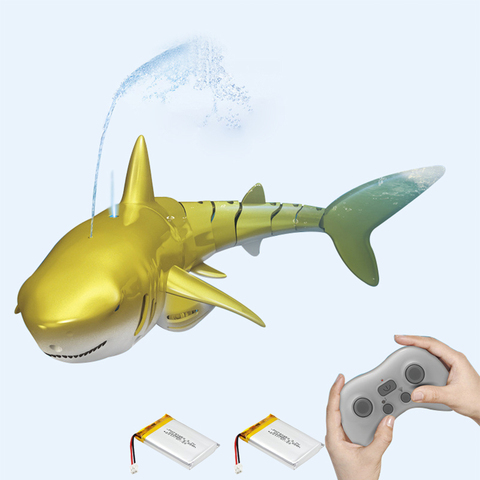 שלט רחוק צעצועי כריש אור ספריי מים עיצוב עמיד למים עם 3 סוללות לבריכת שחייה חדר אמבטיה RC צעצועי סירה לילדים