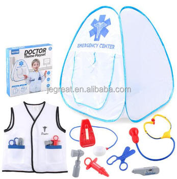 ชุดแต่งตัวและเล่นสมมติแพทย์สำหรับเด็ก,ของเล่นเพื่อการศึกษาพร้อมเสื้อกั๊กเต็นท์เครื่องฟังเสียงเข็มฉีดยา